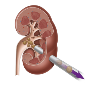 É um procedimento minimamente invasivo usado para remover pedras nos rins ou no ureter. Neste procedimento, o cirurgião faz uma pequena incisão nas costas do paciente e insere um instrumento chamado nefroscópio diretamente no rim para acessar e remover a pedra. Esta técnica é frequentemente utilizada para pedras maiores ou mais difíceis de tratar com métodos não invasivos, oferecendo taxas de sucesso elevadas e uma recuperação relativamente rápida.